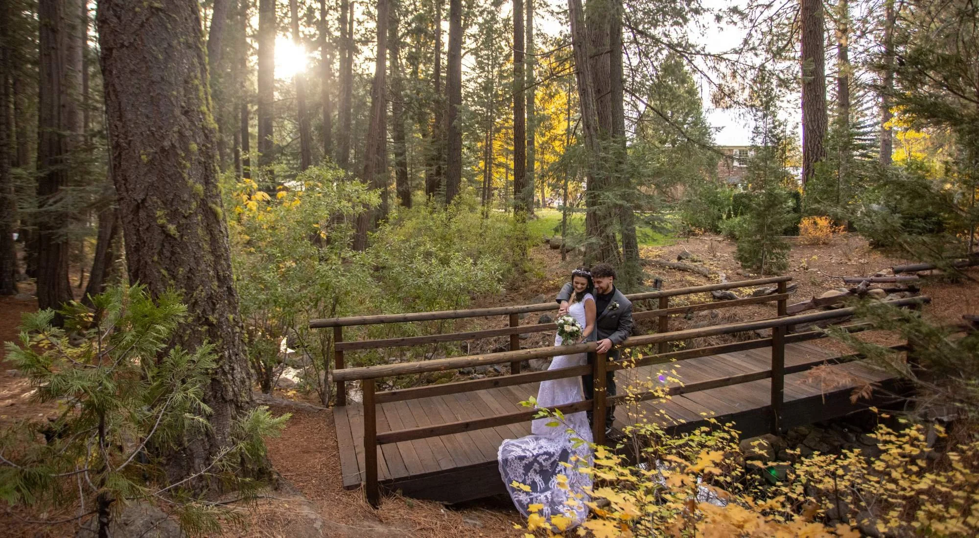 No other forest wedding venue in California captures the same balance of rustic charm and elegant luxury quite like ours. From the nostalgic allure of our historic country store to the glimmering river and majestic forest surroundings, every corner provides a moment made for memories, and for photographs that feel straight out of a storybook romance. Here, your celebration unfolds in a setting as enchanting as the love it honors, where each detail, from golden-hour light to twilight shadows, adds a touch of movie magic that’s remembered long after the day ends.